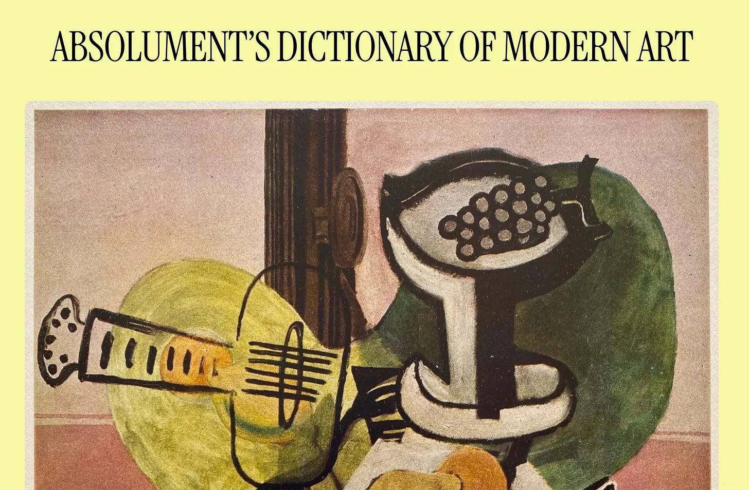 Georges Braque's "La Guitare Et Le Compotier," 1940 is perfectly situated on the cover of Absolument’s Dictionary of Modern Art.Twice a week from February through May, I’ll be sharing a supplementary newsletter for my paid subscribers: Absolument’s Dictionary of Modern Art. Each writing will focus on an artist or movement from the modern era, mimicking entries of a dictionary or encyclopedia.